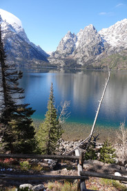Nous longeons la route touristique qui longe la chaine de montagnes. Le Grand Teton est le sommet emblématique de la chaîne. Il culmine à 4 199 mètres . C’est une montagne jeune en termes géologiques : la chaîne s’est formée par le soulèvement de la croûte terrestre le long d’une faille, il y a environ 9 à 13 millions d’années.