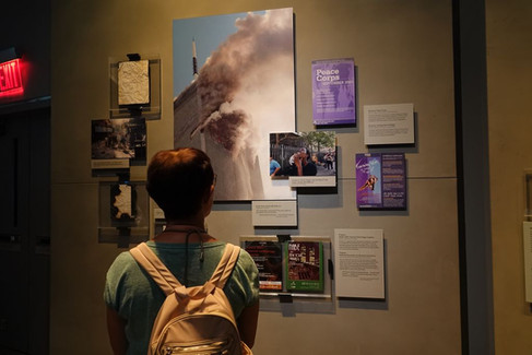 Grand moment d'émotion lorsqu'en poursuivant la visite, on arrive devant un mur de portraits des 2 977 victimes des attentats du 11 septembre 2001 et plus loin un espace audio avec enregistrements sonores poignants, des photos intimes et des objets personnels font partie du parcours. . Il y a aussi des objets retrouvés dans les décombres : escaliers, camions de pompiers, morceaux d’avions, antenne de télétransmission du sommet, morceau d'avion du vol 77 etc...