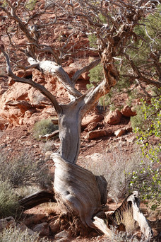 En chemin, la végétation st une végétation de désert , on y trouve des conifères aux racines torsadées, des branches asséchées et certaines nues de feuillages. Pourtant la région n’est pas si désertique que çà, en parcourant des couloirs de rivières secs, on peut imaginer la force et la violence des torrents d’eau et de boues qui peuvent circuler dans ces décors. Il a plu ici il y a quelques jours et certaines flaquent offrent un véritable effet miroir aux parois.