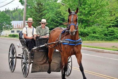 Sur la route, nous croisons une charrette menée par des Amish. Il y a quelques zones de l'île habitées par des communautés Amish. Ils se distinguent par leur style de vie simple, leur rejet de la technologie et leur mode de transport traditionnel en charrette tirée par des chevaux.