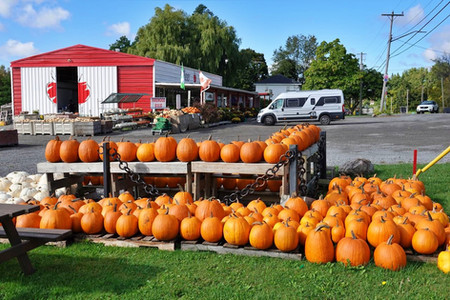 En route nous faisons un arrêt devant un grand magasin de produits de la ferme où sont exposés de nombreuses variétés de courges et citrouilles de formes toutes différentes. Toutes ces couleurs se marient très bien avec les décors automnaux rencontrés en chemin.