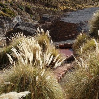Nous marchons à côté de bofedales, sortes de mousses rases qui poussent en altitude le long de rivières. Cette vaste étendue entourée par des montagnes multicolores est habitée par plusieurs espèces d’oiseaux , de lamas et alpagas.