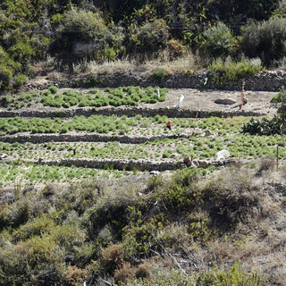 En chemin, nous croisons des villageois en train de travailler dans des cultures en étages. Ils rabattent de l’origan qui selon eux est le plus parfumé en raison des conditions climatiques du site. Nous discutons un moment avec ces personnes et descendons vers le village avec un gros sac d’origan bien frais que nous allons faire sécher.